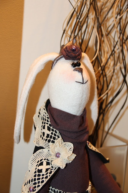 Вот и я заболела тильдами, правда с нашими праздниками вообще нет времени ни на что кроме конфетных букетов. Но руки так и чешутся, так что я выкроила времечко и появилась моя зая, знакомитесь - Виолет,  нежное, кроткое, в переводе с латинского означает фиалка.